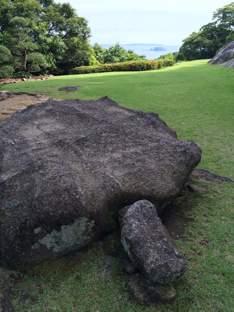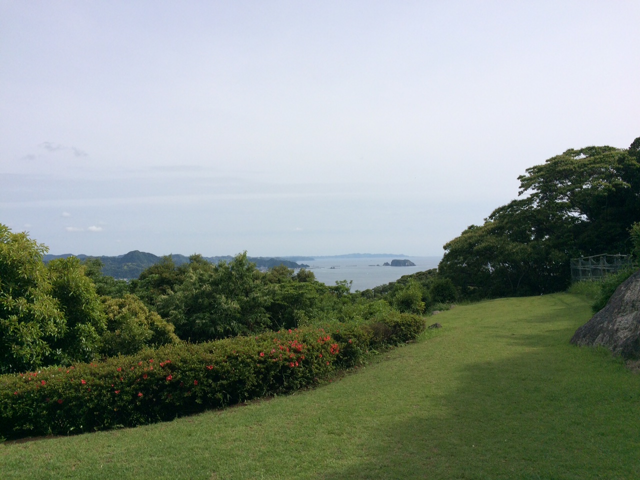 斎場御嶽のすぐそばのカフェの庭から臨む