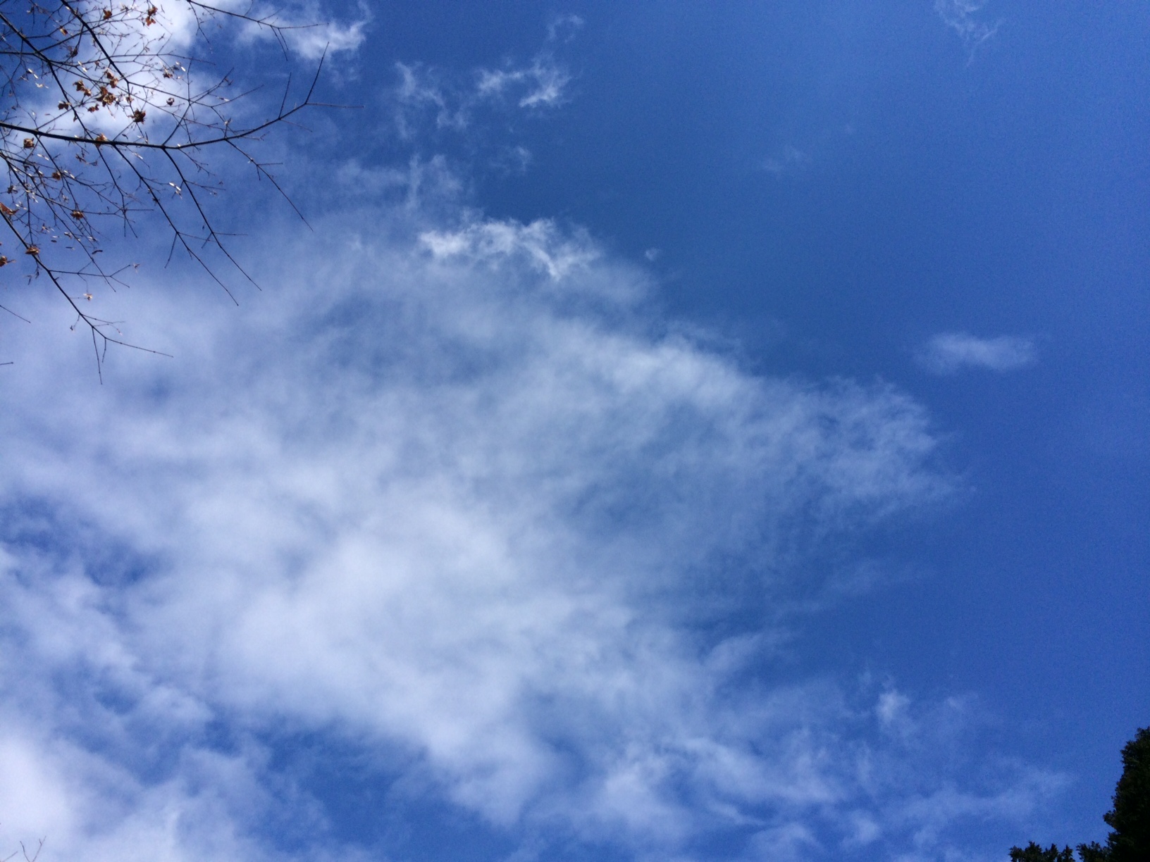 <お寺の奥にある社から見上げた空